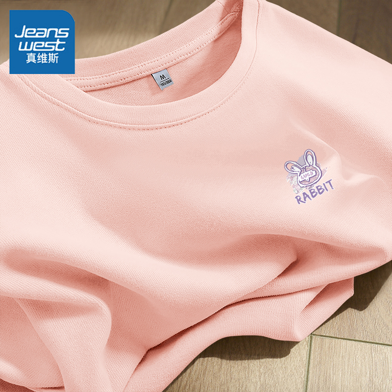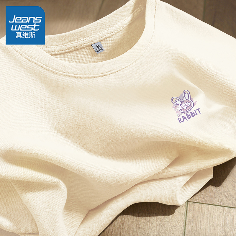 KHV真维斯紫色纯棉短袖t恤女2025新款夏季小个子宽松大码女装体恤