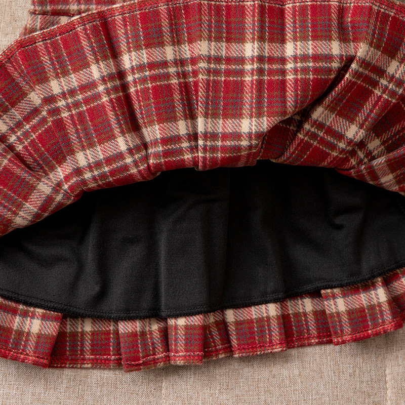 女童半身裙百褶裙秋冬新款儿童新年红色格子百搭短裙女孩裙子冬季