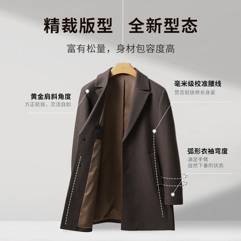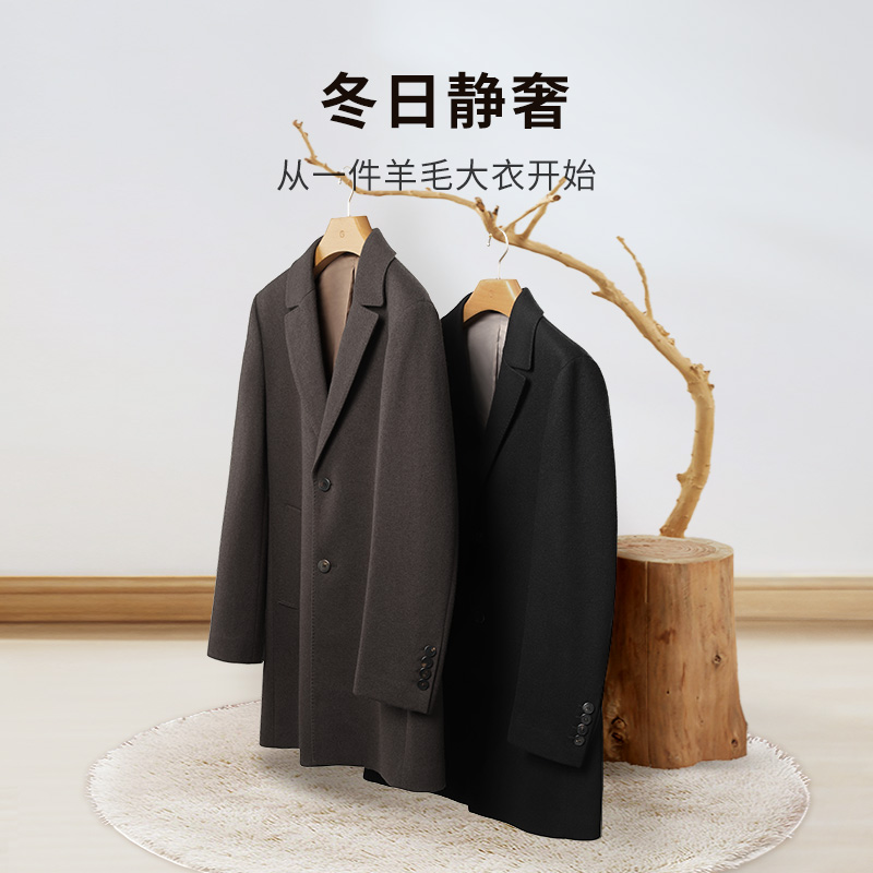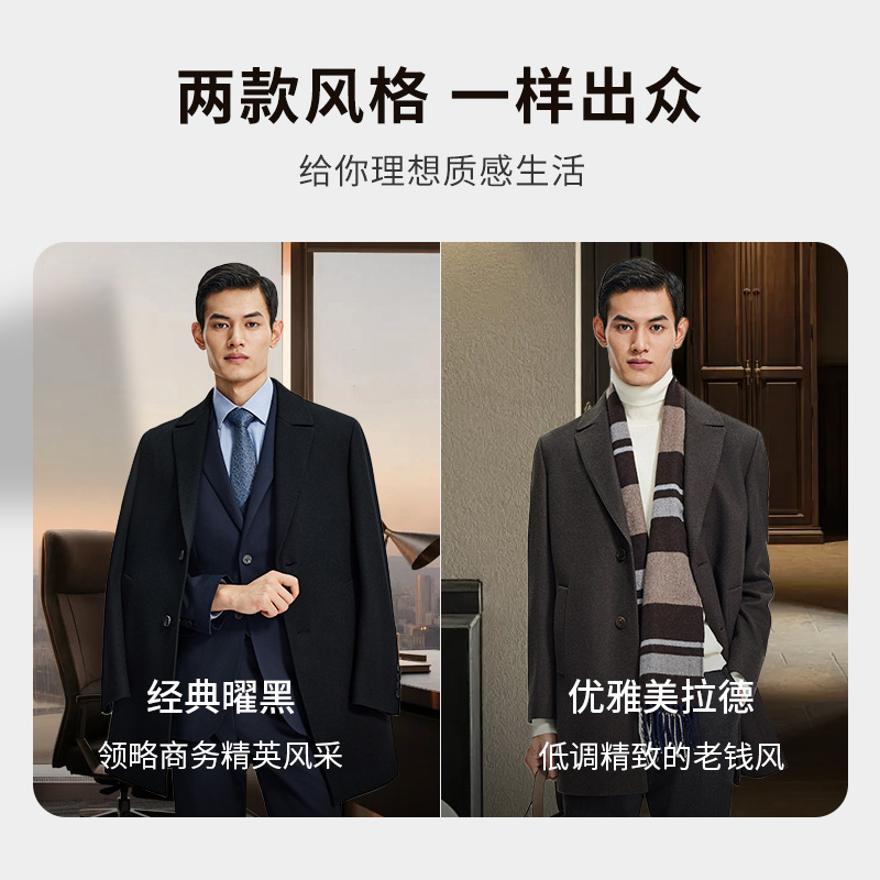 【含羊绒】金利来25秋冬新款男士毛呢大衣翻领羊毛混纺夹克外套男