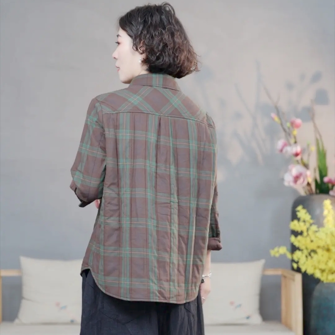 夹棉长袖休闲百搭衬衣时尚文艺韩版格纹衬衫2025冬季新款棉服棉服