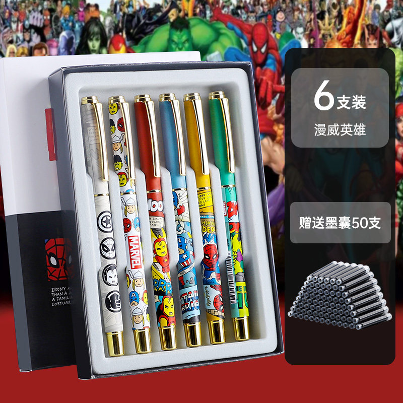 迪士尼钢笔小学生专用练字学生三四年级儿童男女孩套装漫威蜘蛛侠礼盒可替换蓝色墨囊可擦笔包尖暗尖学习用品
