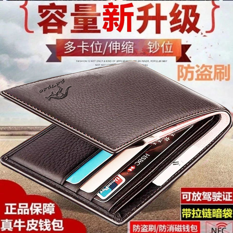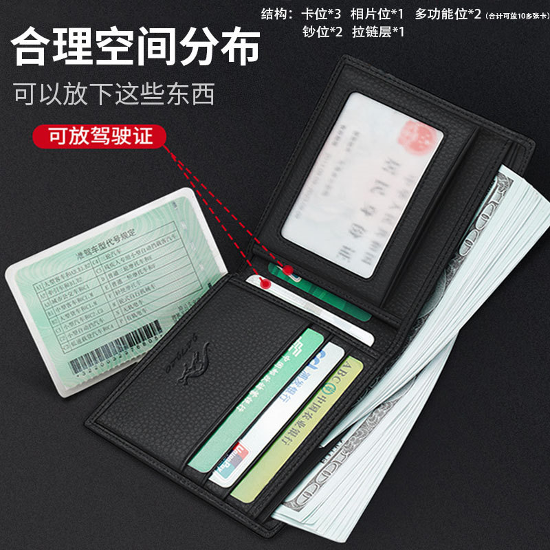 男士真皮钱包短款牛皮钱包男多卡位驾驶证袋鼠域新款真皮钱包男款