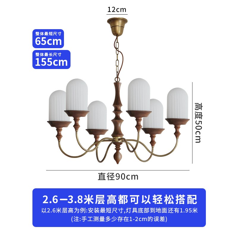 法式吊灯客厅主灯中古黑胡桃黄铜美式乡村风复古别墅餐厅loft灯具