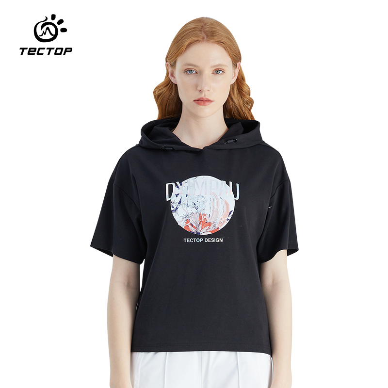 探拓春夏季套头短袖套头卫衣女时尚显瘦运动运动跑步外套休闲衣棉