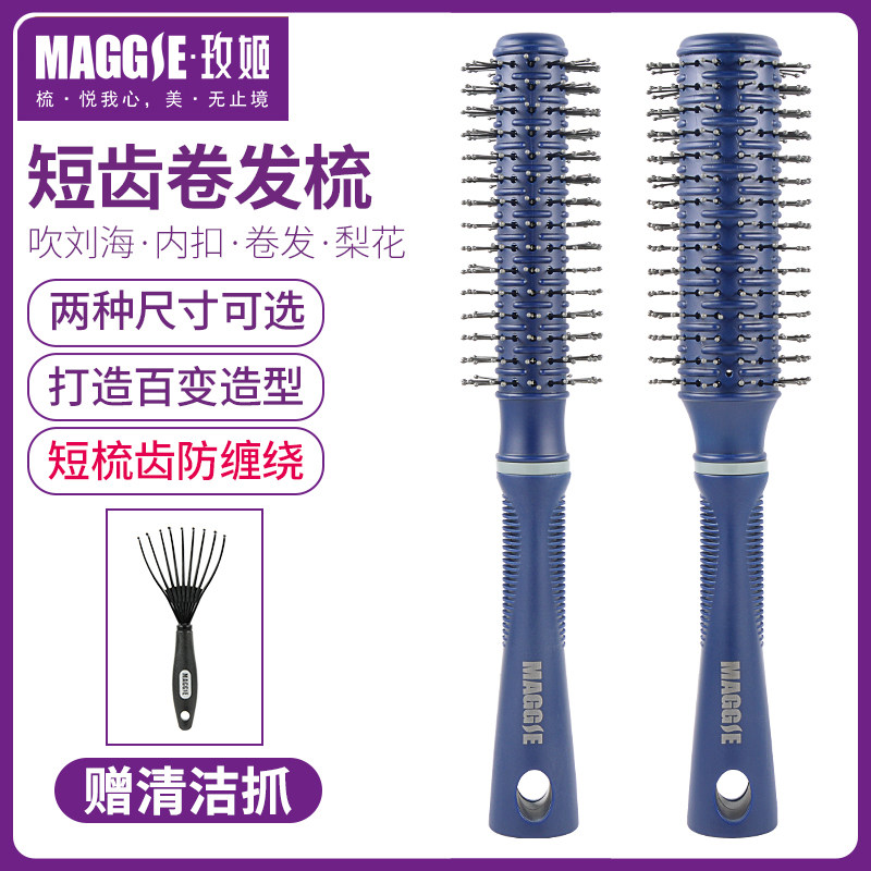 玫姬短齿卷发梳圆梳子内扣吹造型直发圆筒梳刘海滚梳梨男女适用