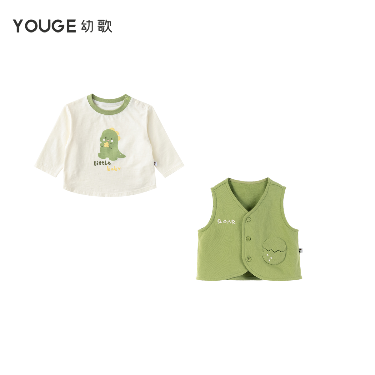 【竹节棉】幼歌婴幼儿春季新品柔软马甲小恐龙印花撞色圆领透气T