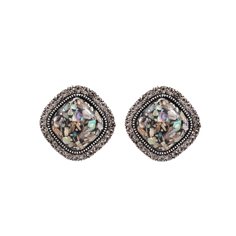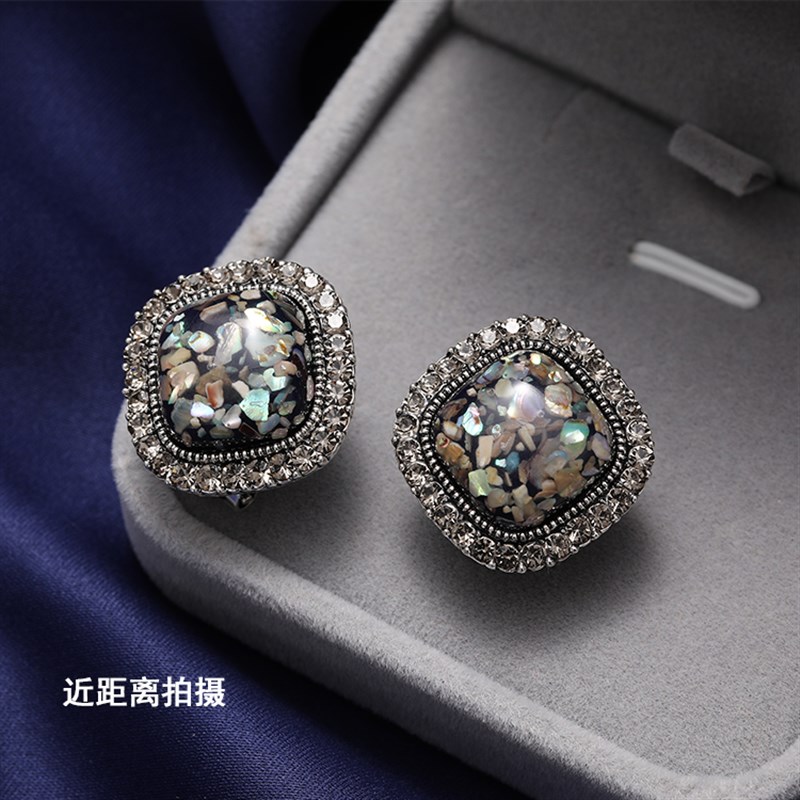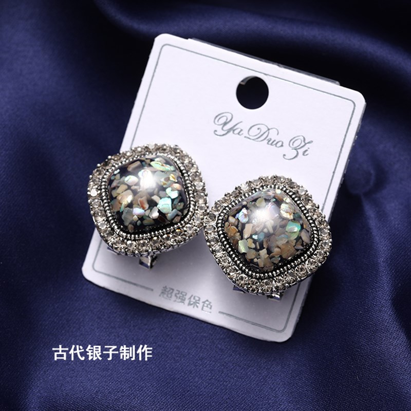 雨花石耳钉古银简约个性气质网红高级感复古耳环韩国W大气新款潮