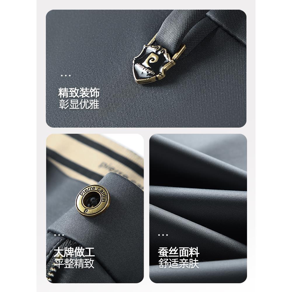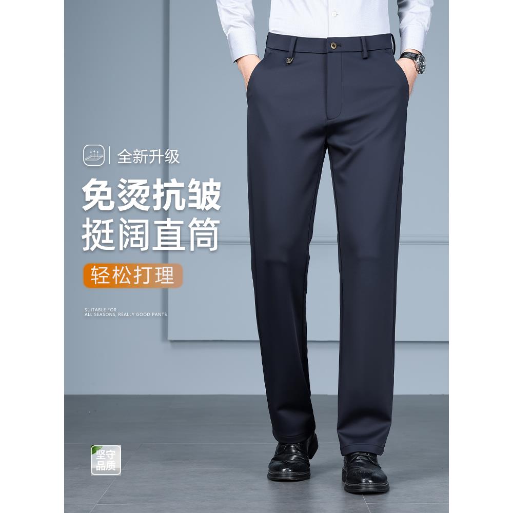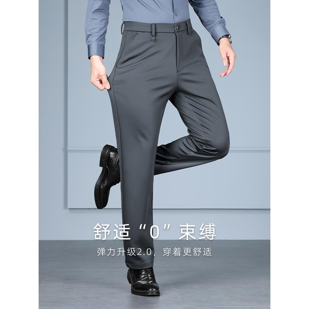 皮尔卡丹桑蚕丝男士休闲裤男秋季新款中年商务西裤弹力直筒长裤子
