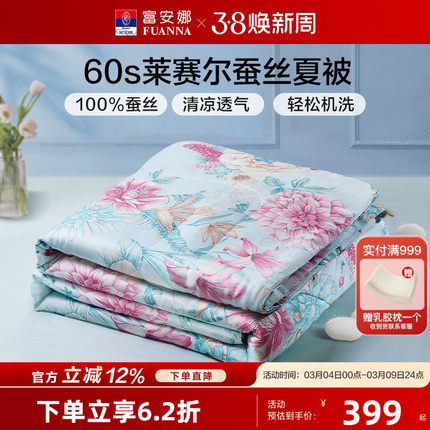 富安娜蚕丝被60支天丝空调被夏被凉感可水洗蚕丝夏凉被子薄被芯