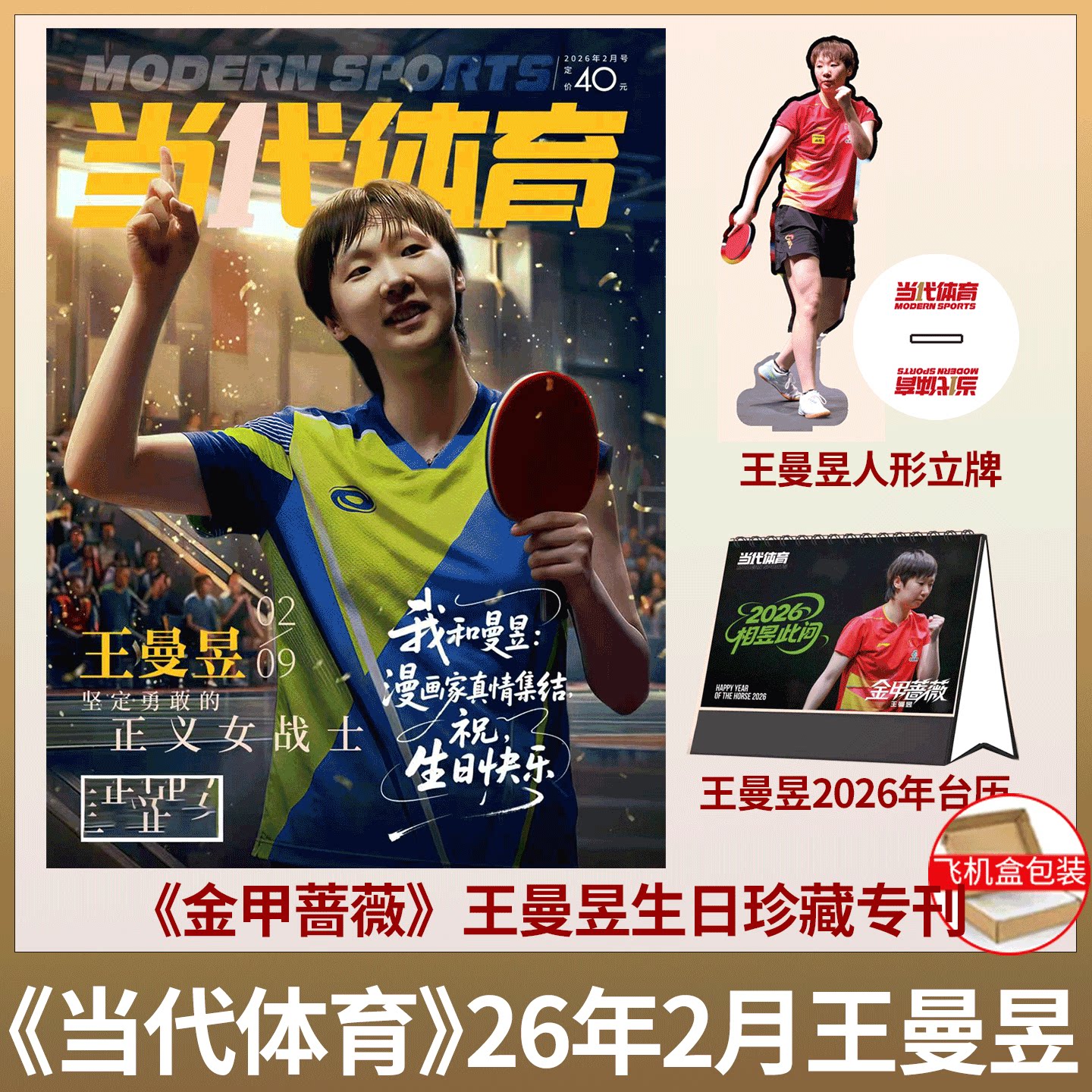 乒乓世界 26年2月 王曼昱封面+海报/ 时尚先生fine/当代体育·乒乓画刊杂志 2026年2月号《金甲蔷薇》王曼昱生日刊纪念/ V中文版
