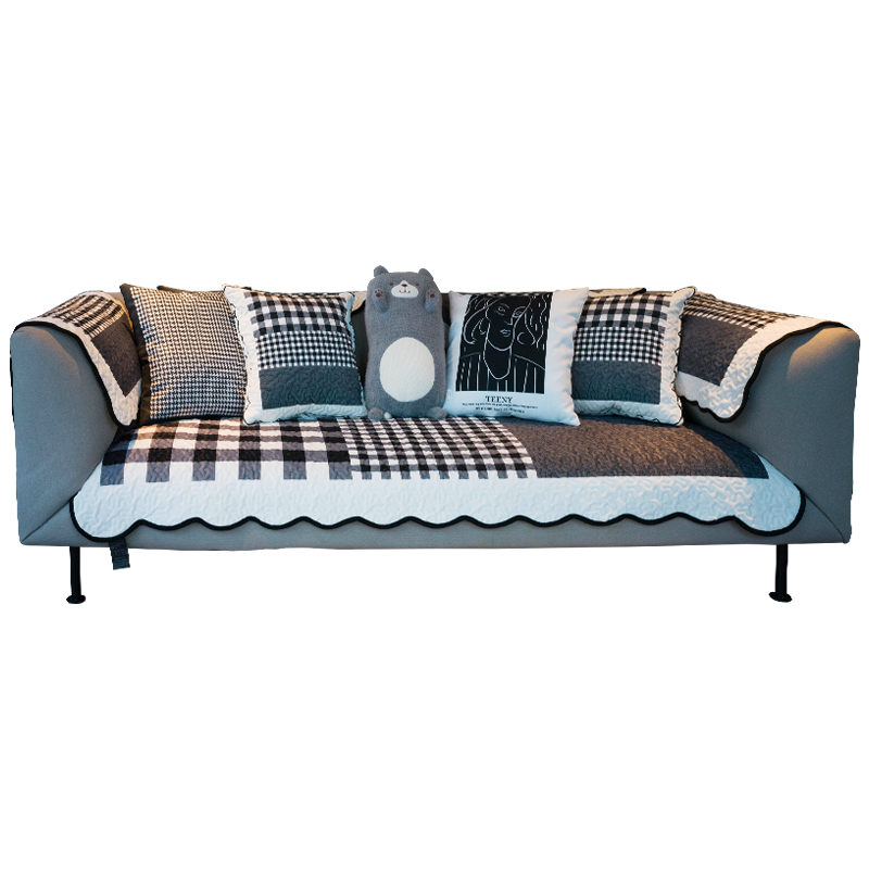 韩式波浪边沙发垫坐垫简约格子沙发盖防脏防滑沙发巾组合沙发定制