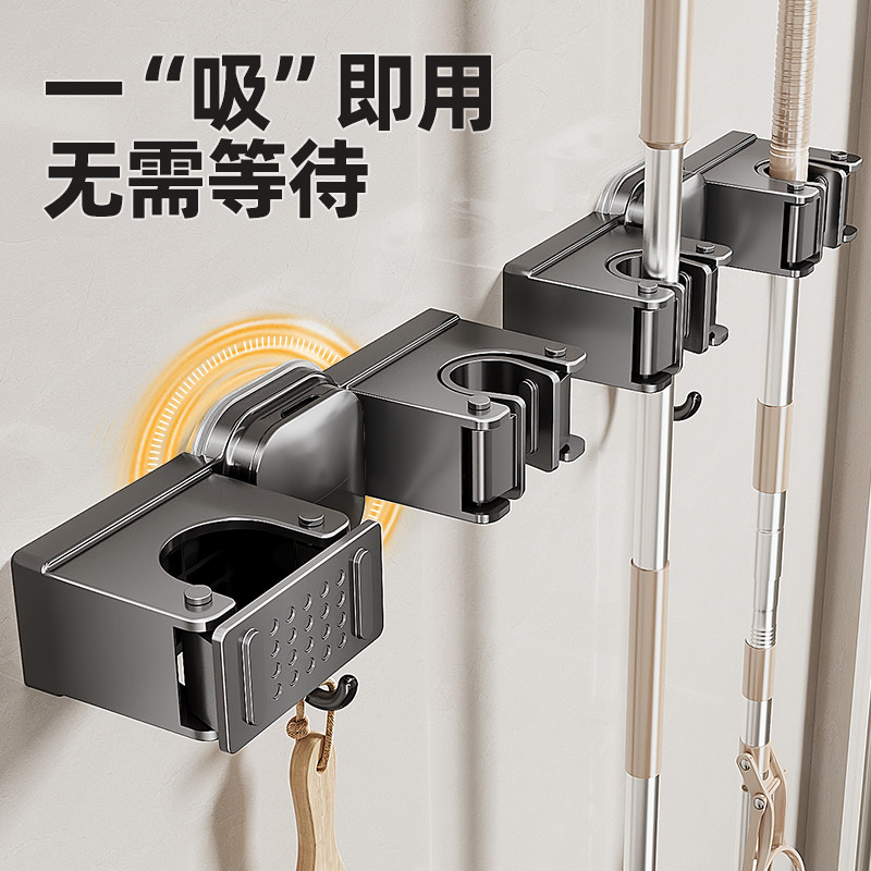 吸盘拖把壁挂夹卫生间扫把拖布架免打孔挂钩浴室清洁工具收纳神器