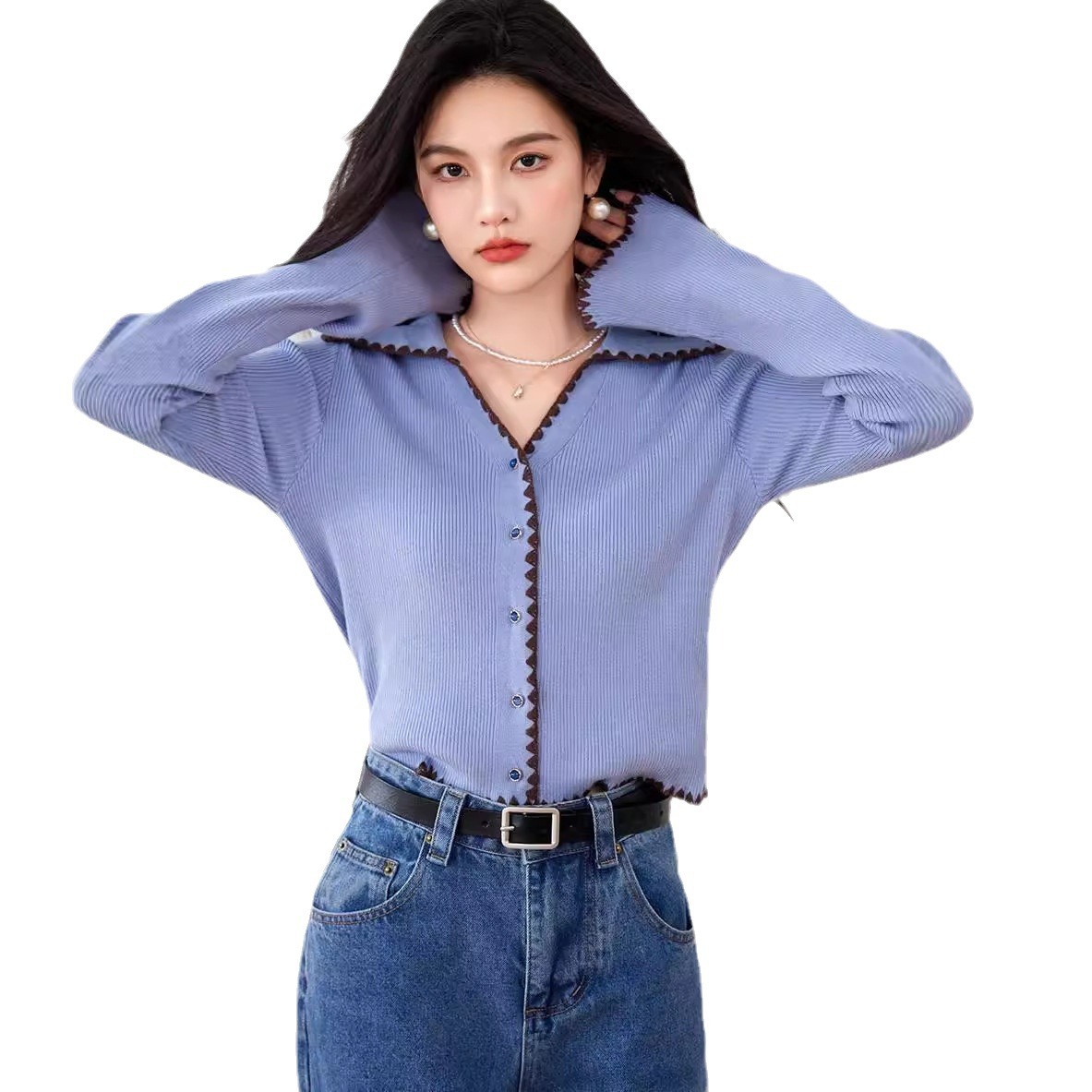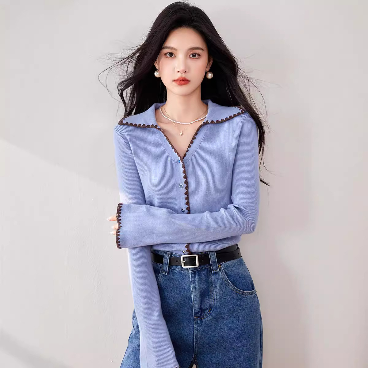早秋2025新款小香风高级感穿搭多巴胺紫色毛衣开衫针织外套上衣女