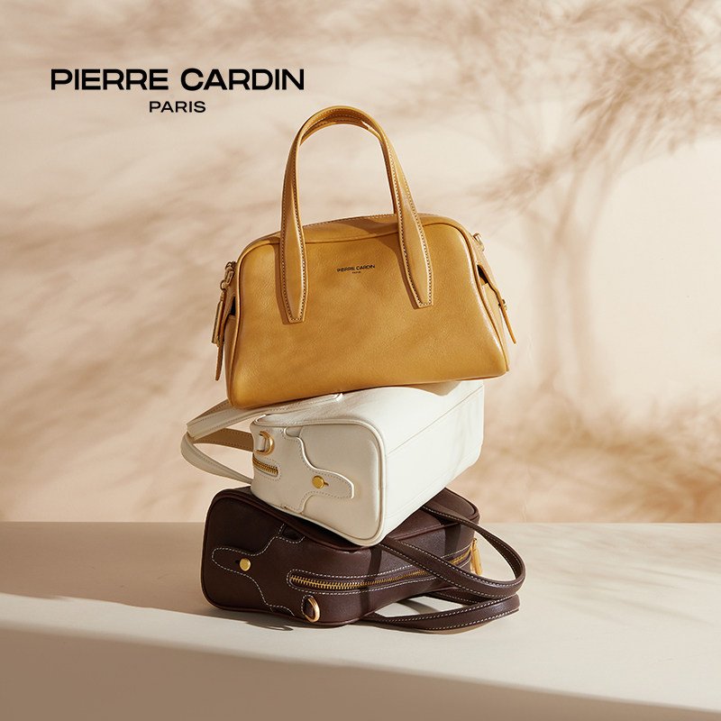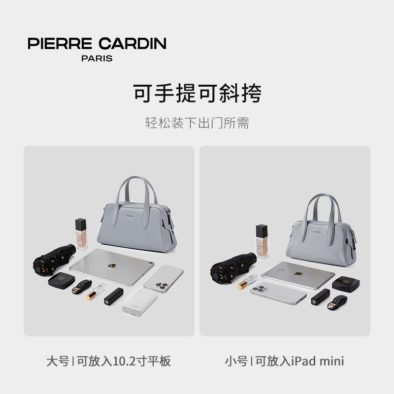 【真皮】皮尔卡丹女包植鞣保龄球包复古波士顿手提包情人节礼物