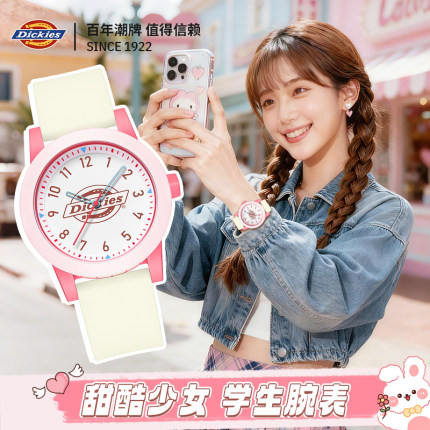 Dickies学生手表女款儿童小学生初高中静音指针考试专用只看时间