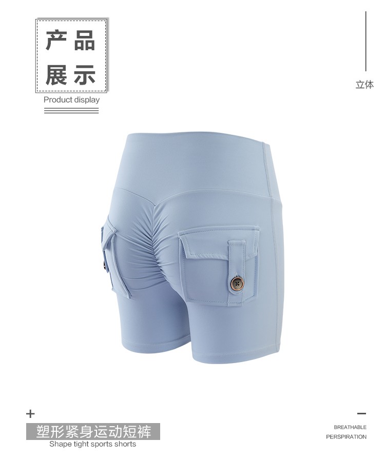 Mitaogirl口袋工装健身短裤女提臀紧身三分瑜伽裤性感运动短裤夏
