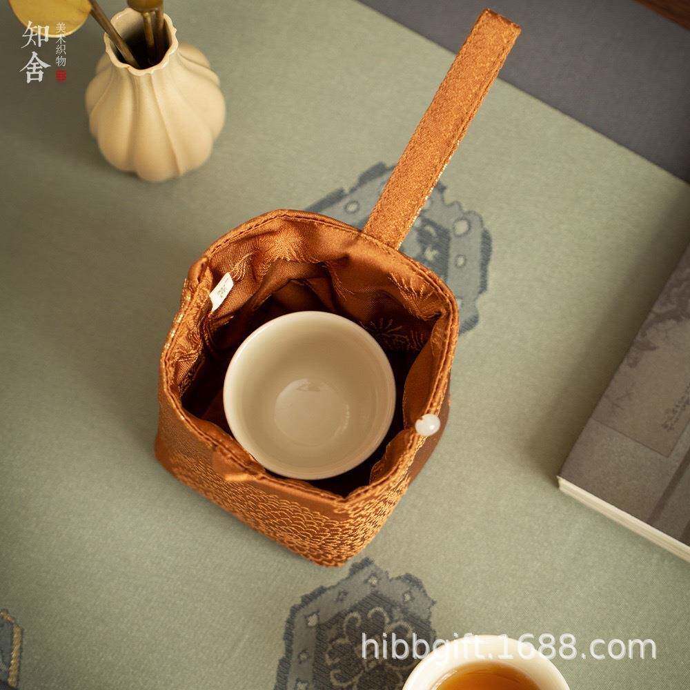 知舍织锦长安菊茶杯袋茶壶袋收纳袋旅行户外便携布艺茶具布袋布包