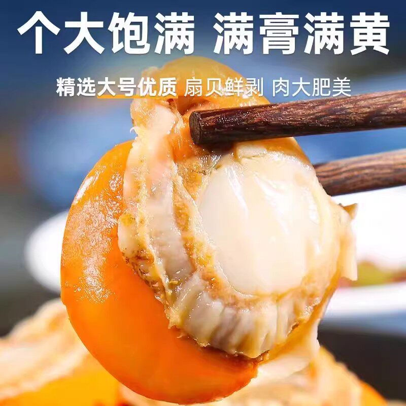 青岛扇贝肉鲜剥带黄带膏特大无冰无沙全贝肉