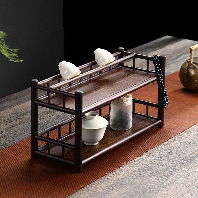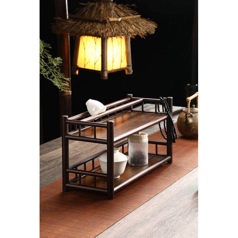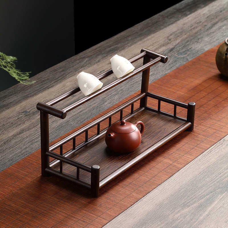 双层堂紫砂架 竹壶 架茶杯宠 架子壶摆件博古架 益收纳茶茶具
