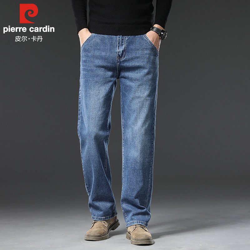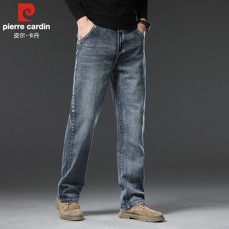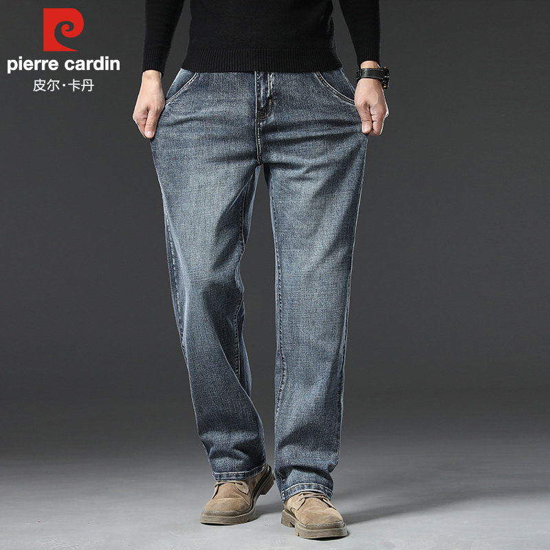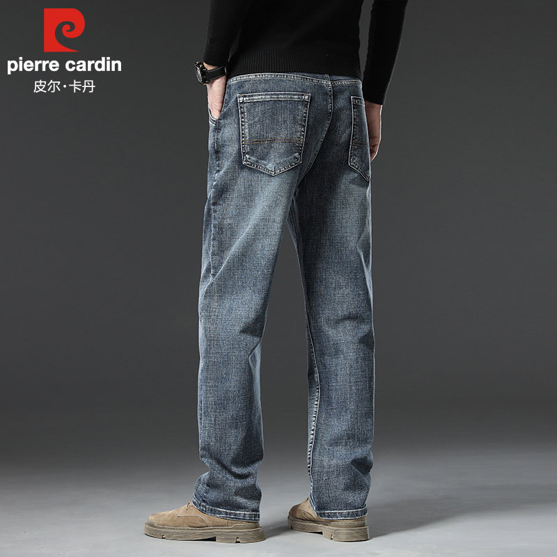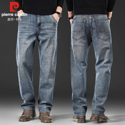 皮尔卡丹复古水洗牛仔裤男宽松直筒2025秋冬新款加绒商务休闲长裤