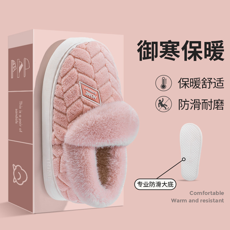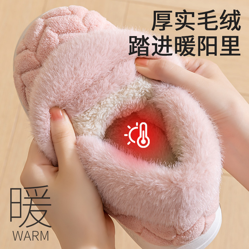 棉拖鞋女士包跟2024新款冬季家居室内厚底防滑保暖毛毛加绒棉鞋男