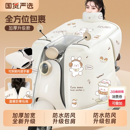 电动车挡风被冬季加绒加厚全包斗篷式电瓶摩托防风防水罩四季通用