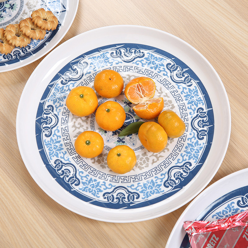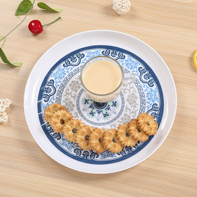 现代简约圆形托盘 茶盘水杯客厅家用仿瓷餐具塑料水果盘子