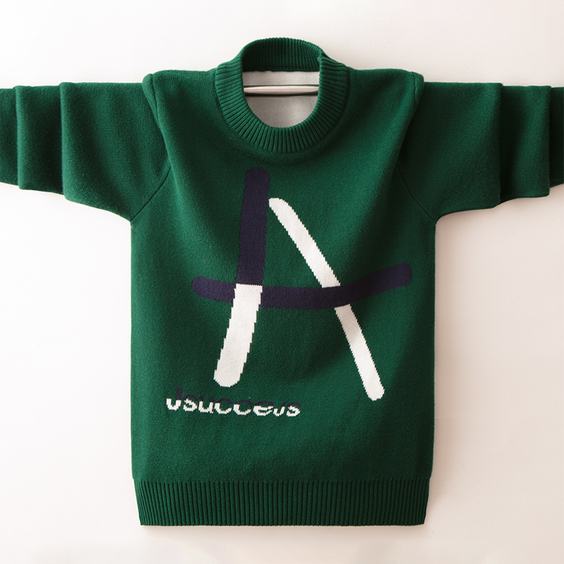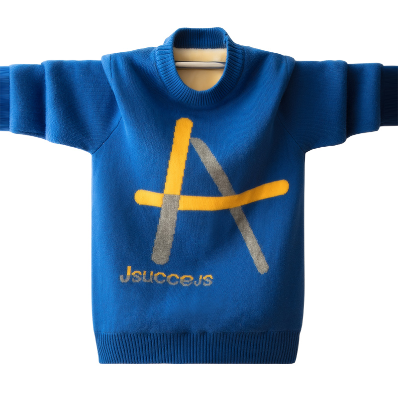 男童毛衣秋冬加绒加厚纯棉针织衫中大童韩版洋气女童套头打底衫潮