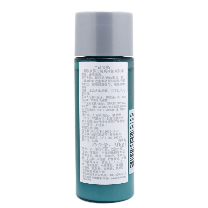 碧欧泉 男士清爽净油海盐爽肤水30ml小样 控油补水 细肤收缩毛孔
