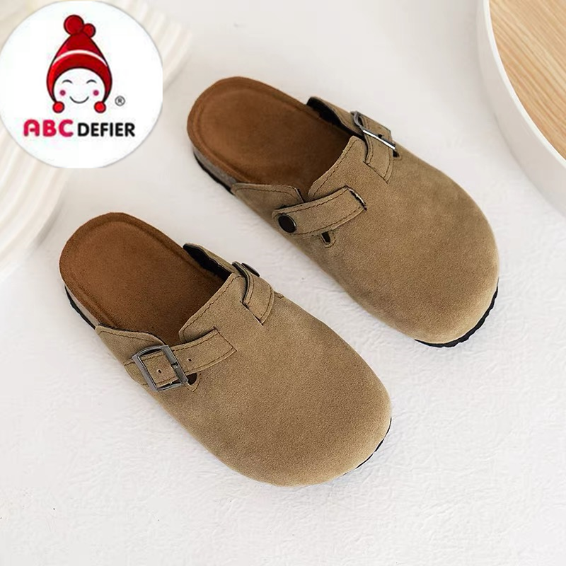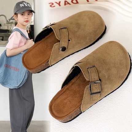 奥莱品牌儿童包头拖鞋博肯仿绒皮半拖运动鞋秋冬男女童一脚蹬鞋子