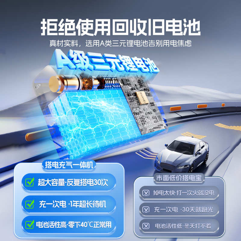 奥舒尔汽车应急启动电源车载充气泵搭电宝多功能搭电打气泵一体机