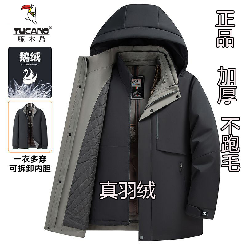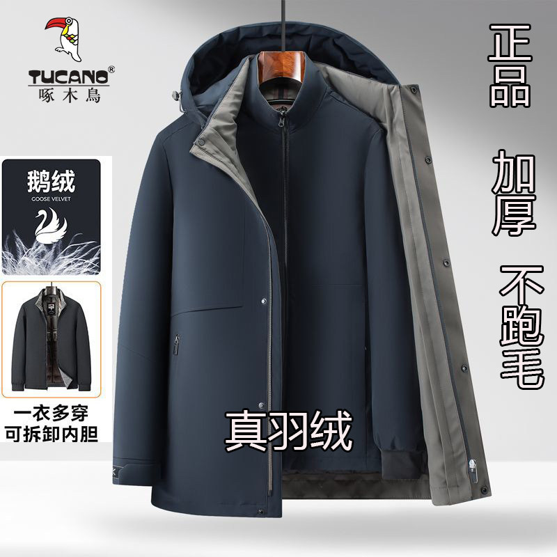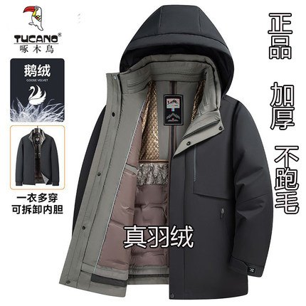 啄木鸟可拆卸脱卸内胆冬季加厚鹅绒保暖爸爸中老年男士羽绒服外套