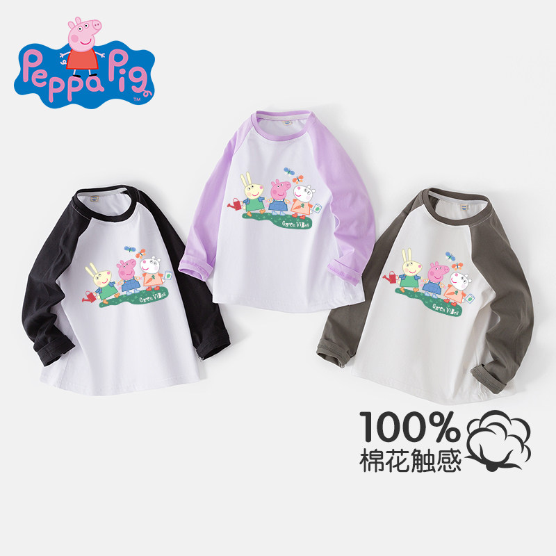 小猪佩奇圆领休闲长袖100%棉T恤