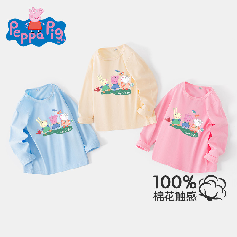 小猪佩奇儿童长袖T恤2026男童春装打底衫女宝宝新款纯棉宽松上衣
