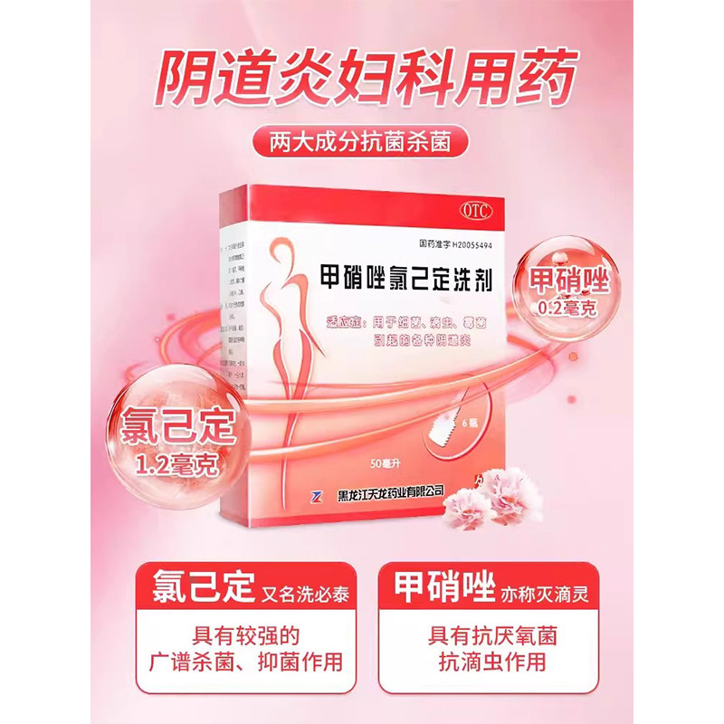 天龙甲硝唑氯己定洗剂洗液阴道炎妇科用药冲洗液氯已定洗剂清洗液