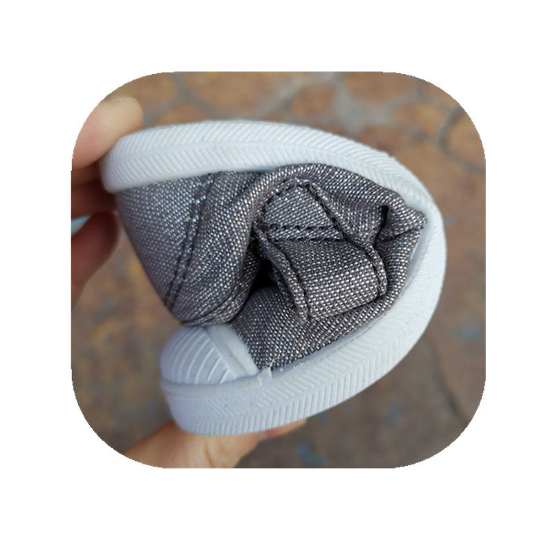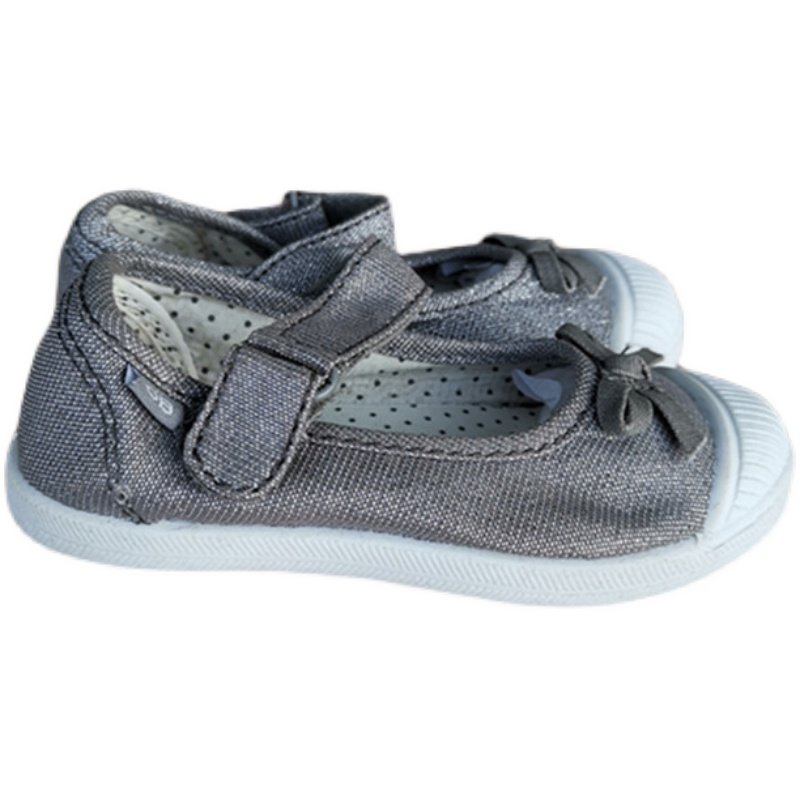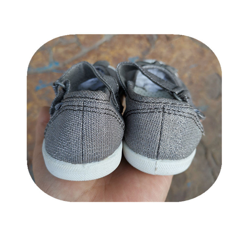 法单棉布料童鞋帆布鞋儿童运动休闲平底鞋防滑银灰色蝴蝶结小一码