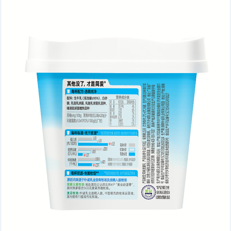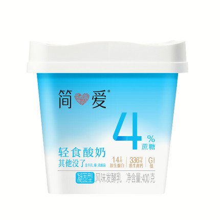 简爱轻食酸奶4%蔗糖方桶酸奶400克原味酸奶