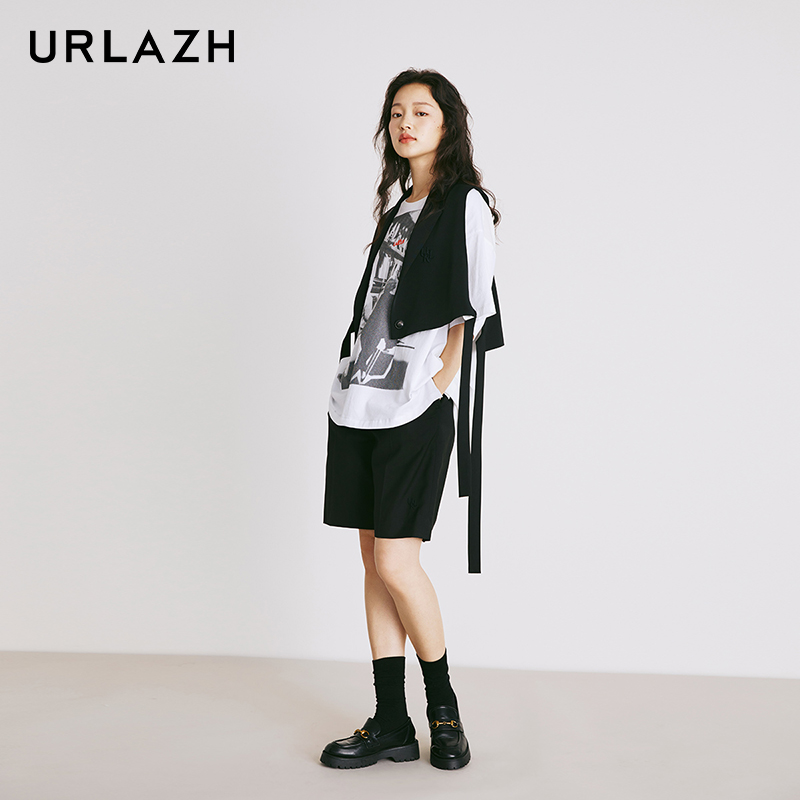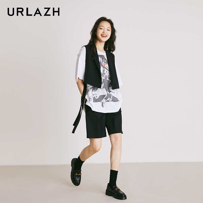 URLAZH有兰夏季新款复古黑色简约休闲宽松短款气质西装背心马甲女