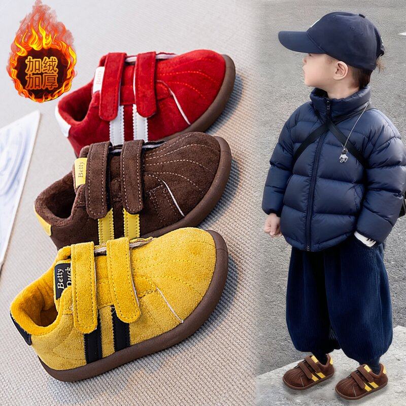 儿童运动鞋冬季软底防滑男童加绒加厚棉鞋女童时尚板鞋宝宝鞋子潮