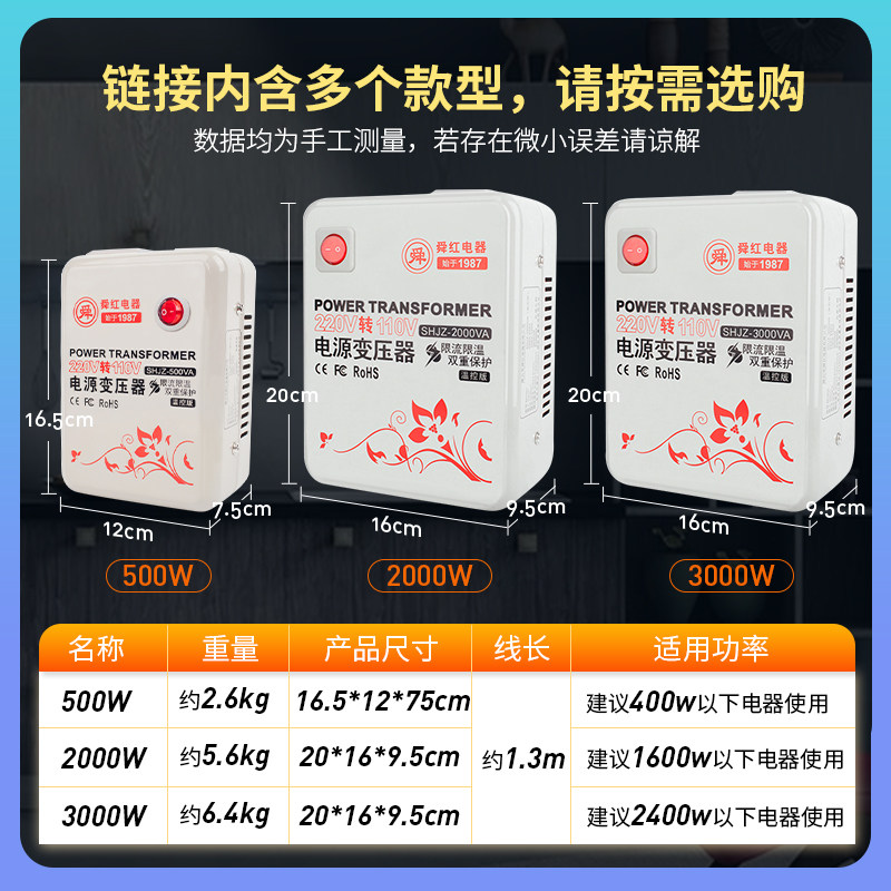 舜红变压器500W2000W3000瓦电压转换器220v转110v 定订做香港英标