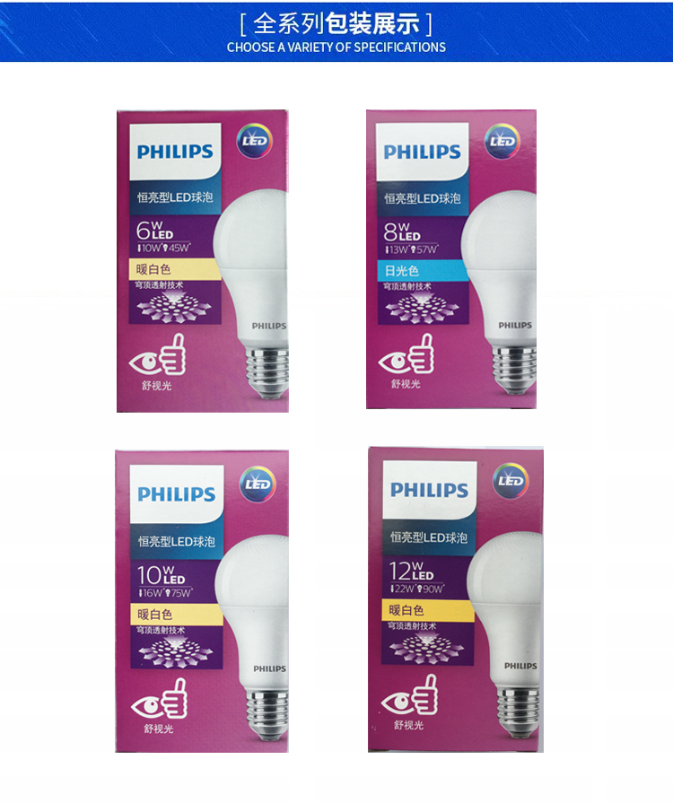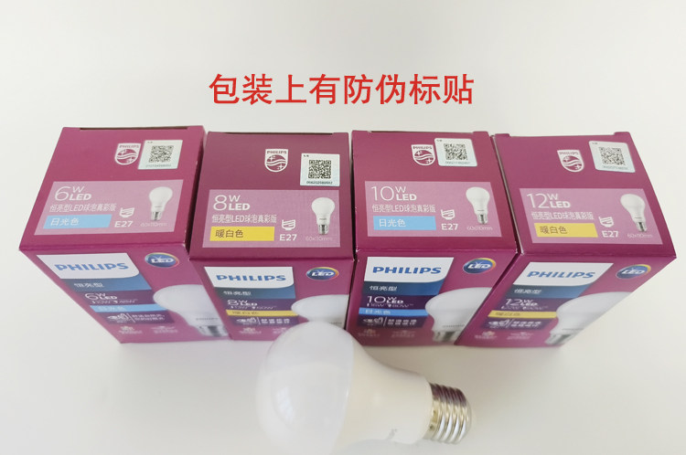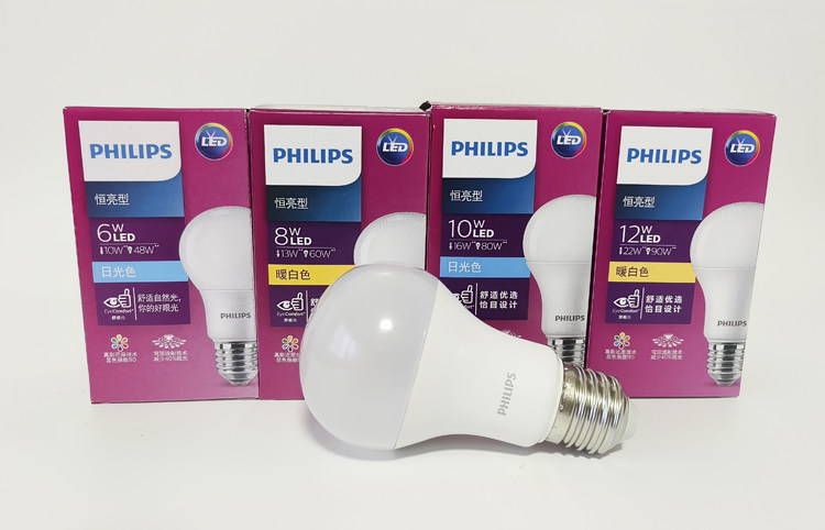 飞利浦LED灯泡球泡E27大螺口恒亮型6W8W10W12W超亮节能照明灯泡