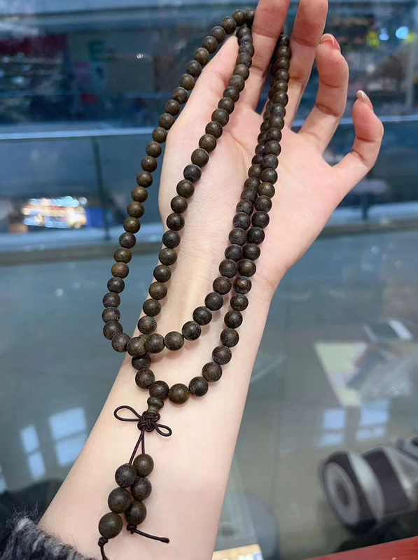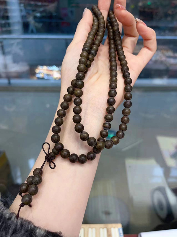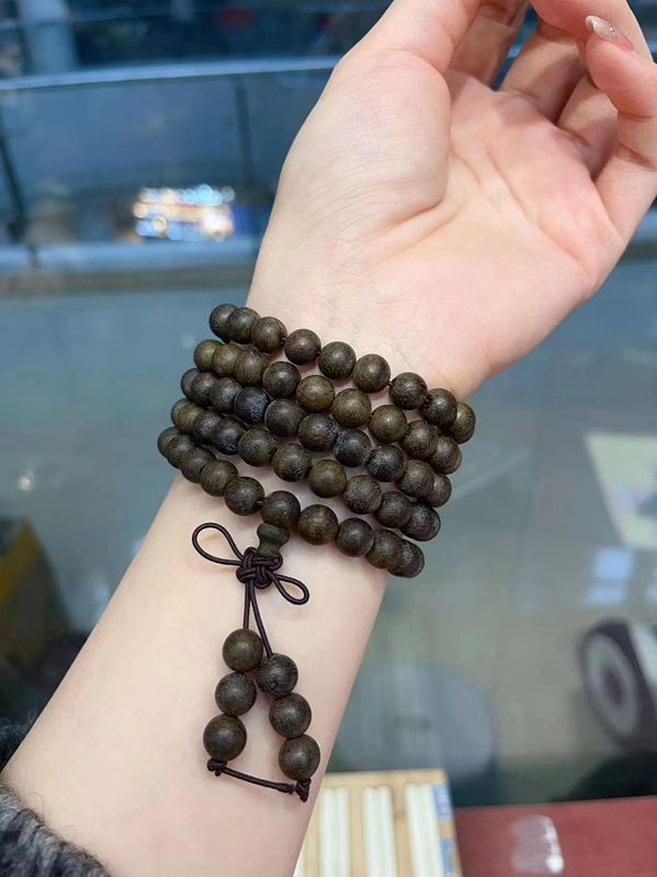 特价绿奇楠沉香8mm佛珠多圈手链 存在瑕疵 TY1552