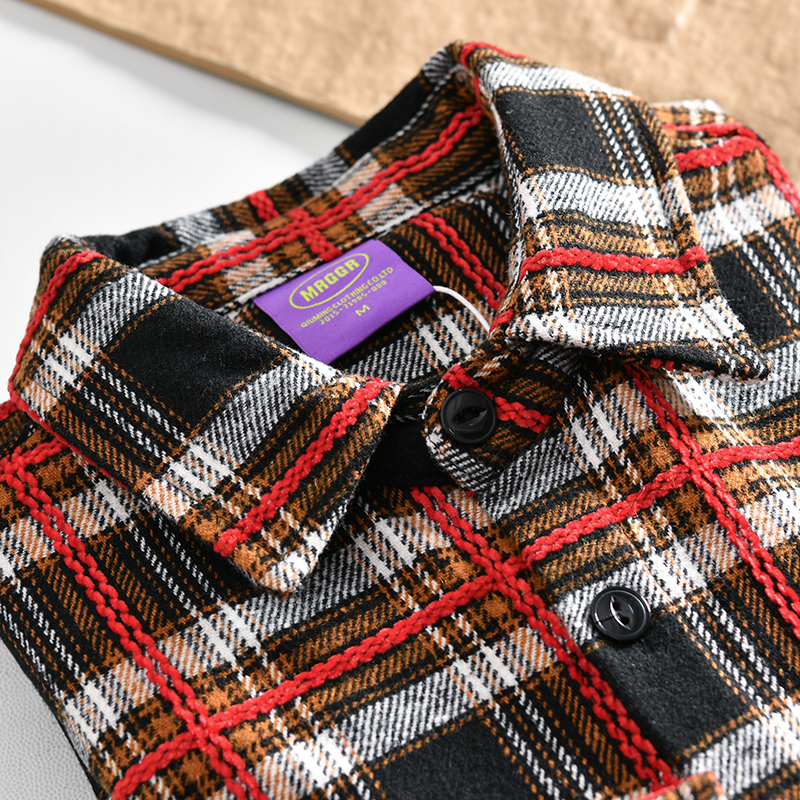 到手惊喜!加厚呢料!秋冬外贸男士日系复古工装格子休闲长袖衬衫