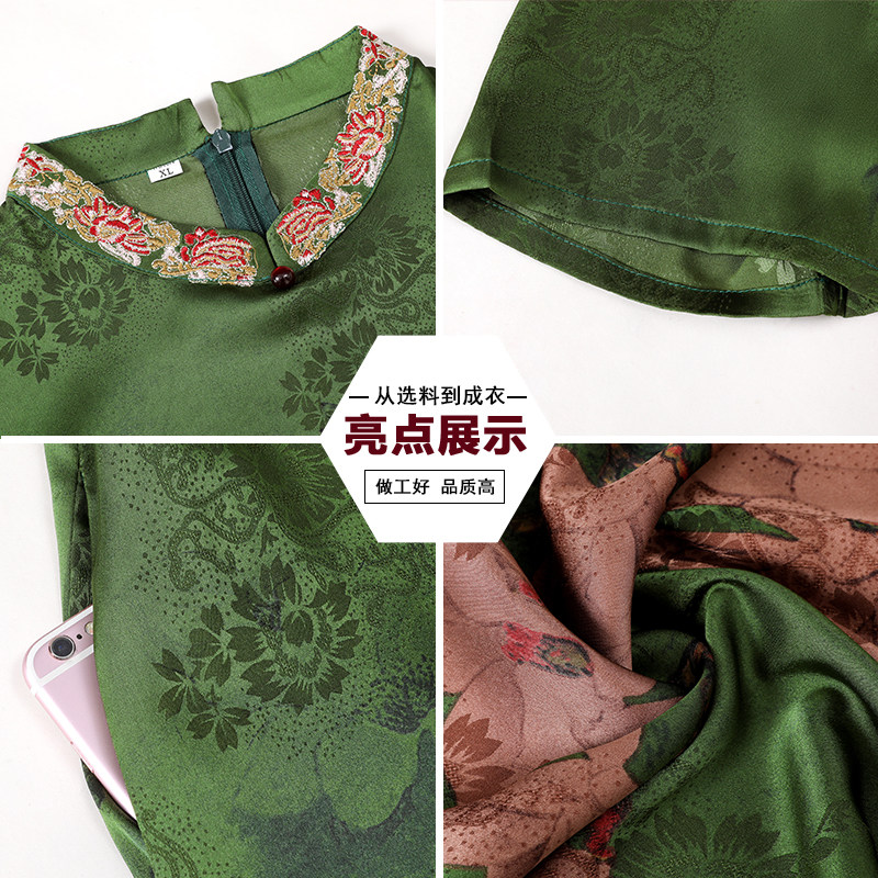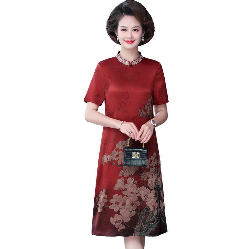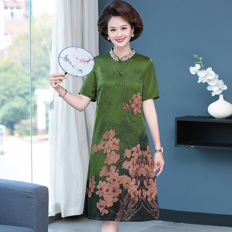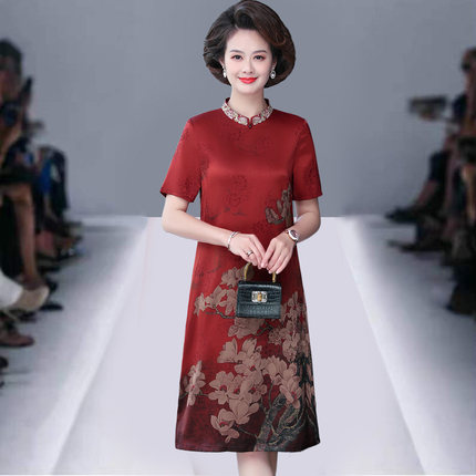 夏季新款妈妈真丝短袖连衣裙宽松