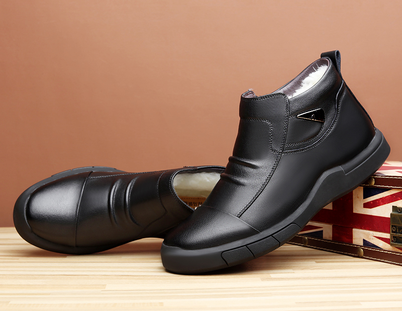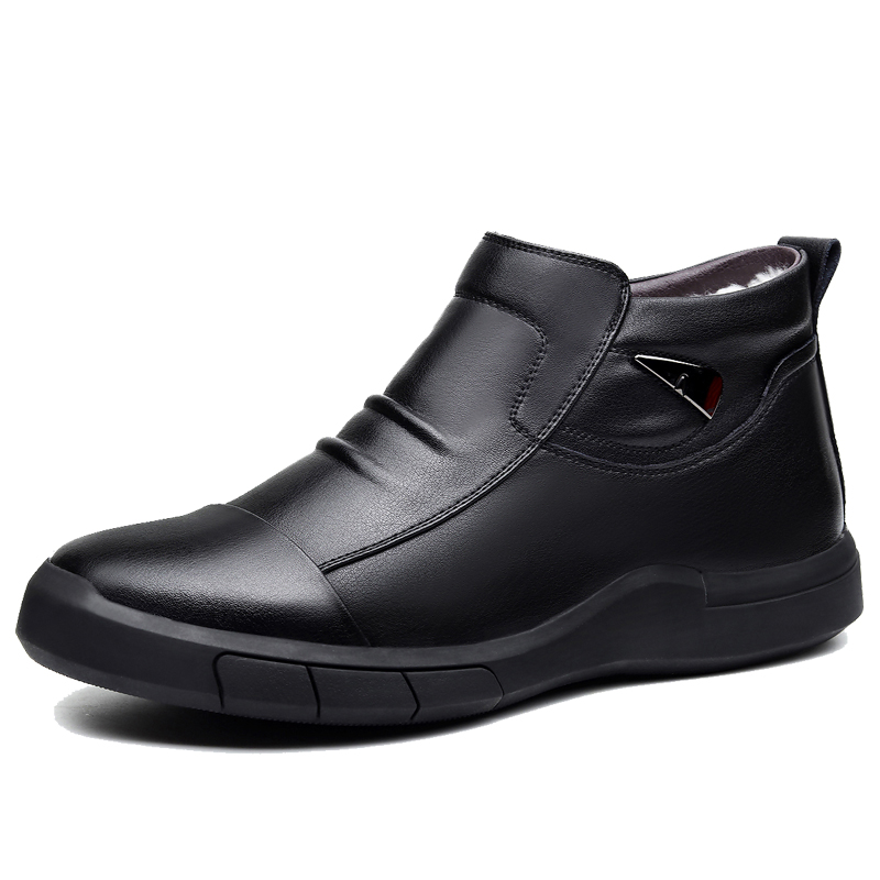 冬季2022新款男士休闲真皮低帮套脚保暖皮鞋男鞋个性羊羔毛棉鞋男