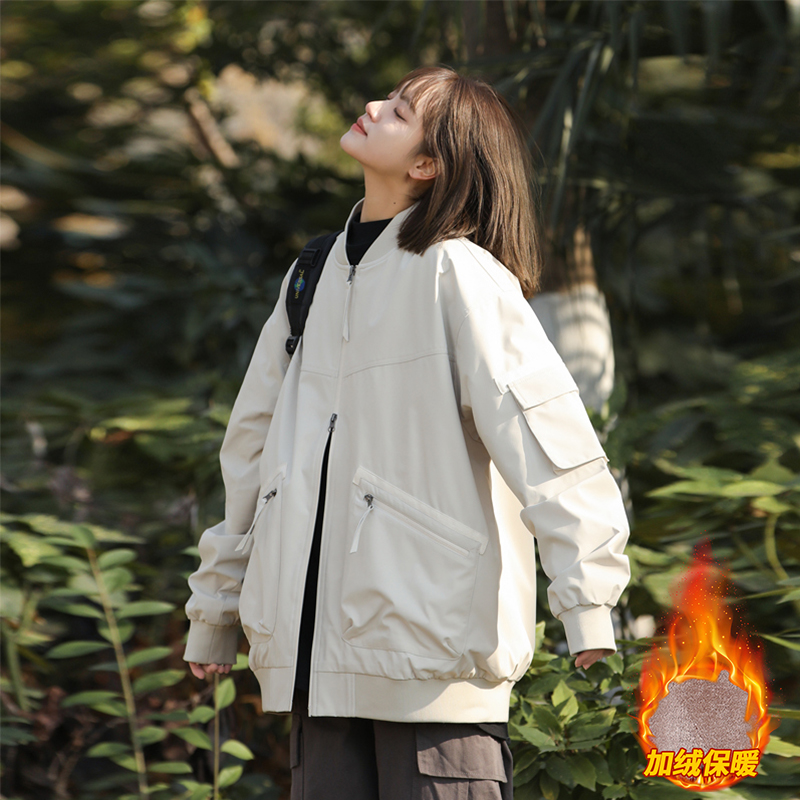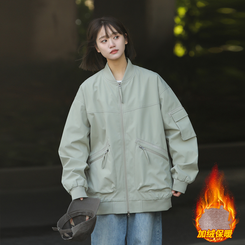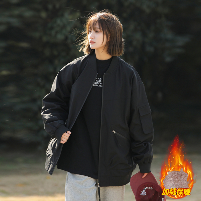 加绒夹克男款冬季加厚保暖休闲外套青少年棒球领防寒棉服潮