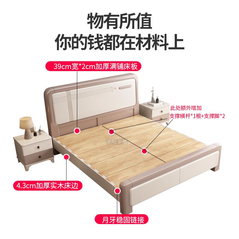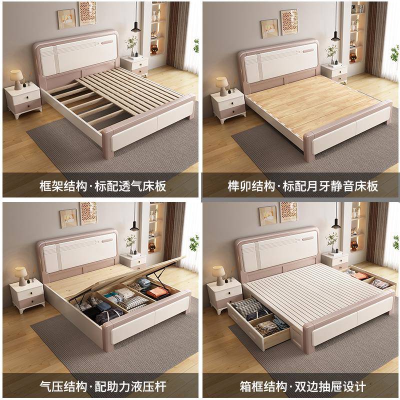 北欧实木床1.8米现代简约双人床主卧婚床1.5米储物高箱工厂直销
