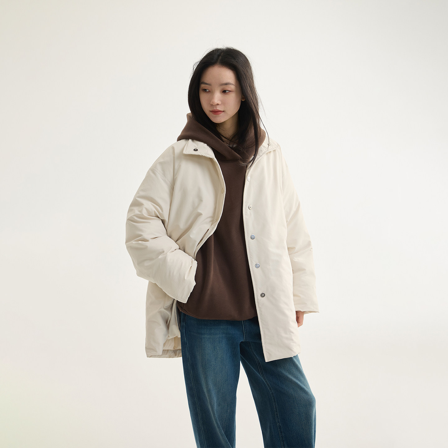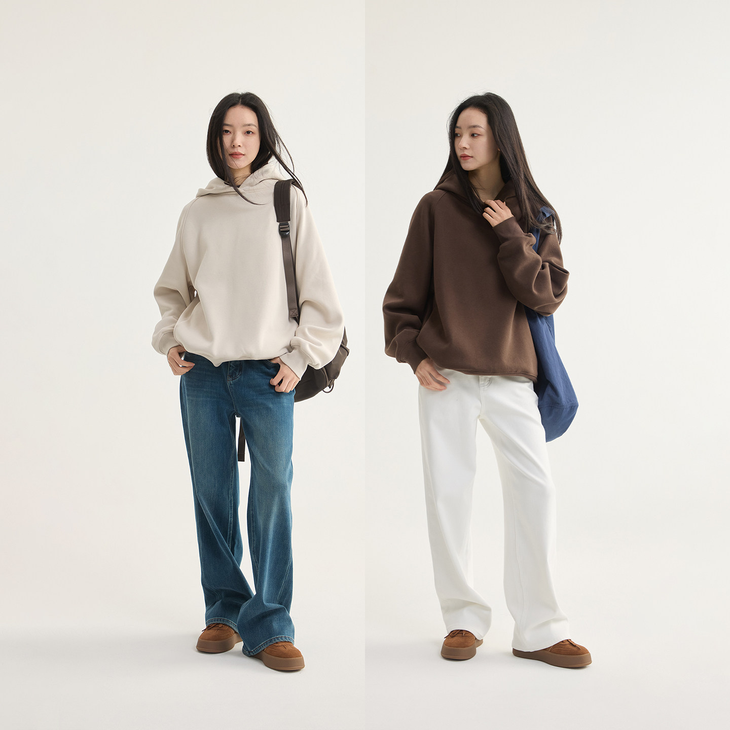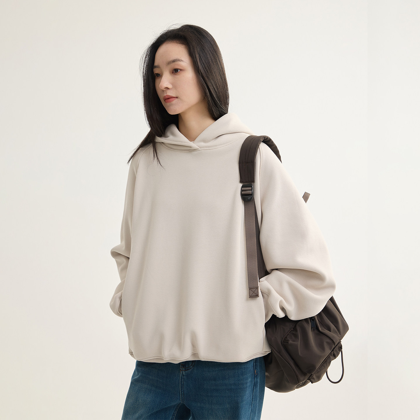 芙蕖FUXU 加绒加厚 大口袋宽松保暖长袖上衣外套连帽套头卫衣女