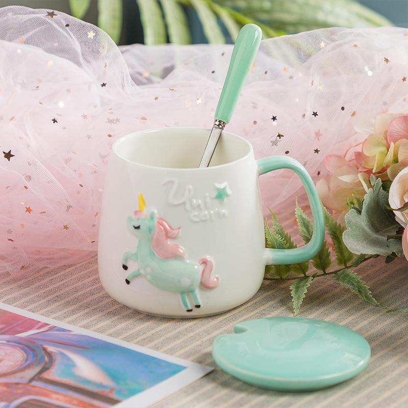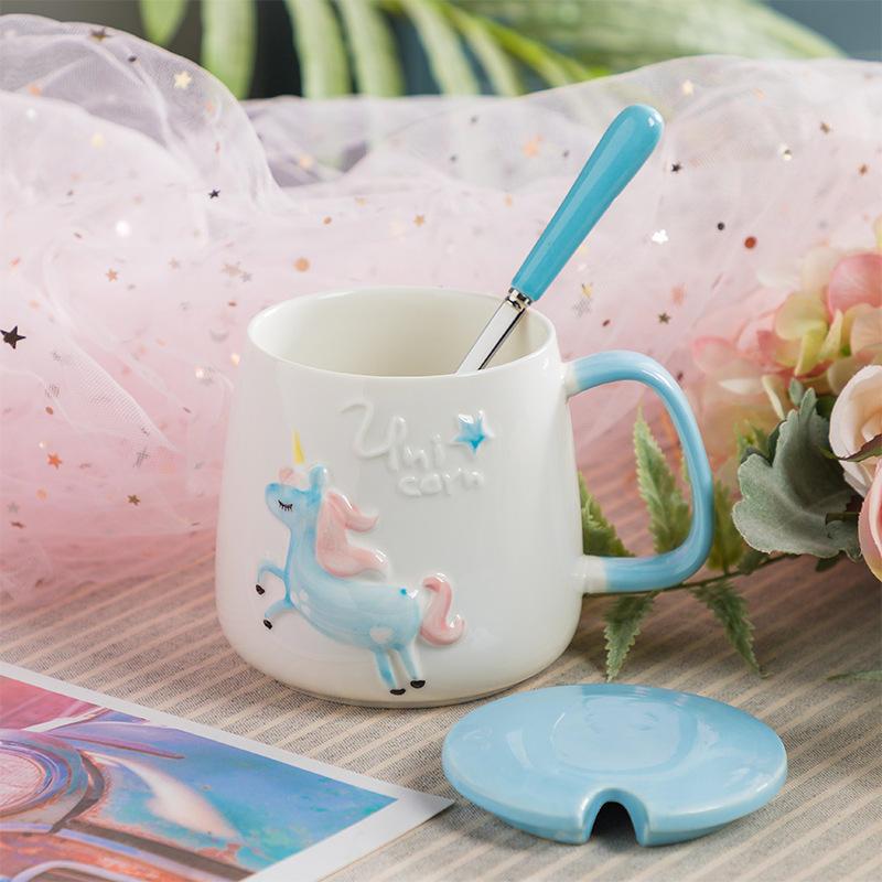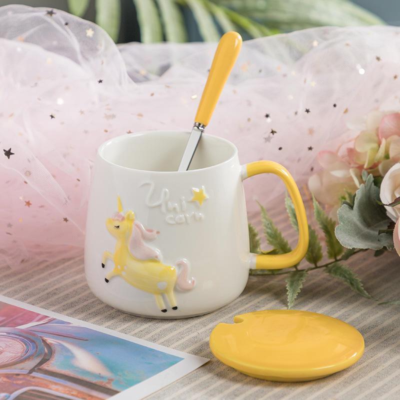 独角兽创意卡通情侣陶瓷咖啡杯带盖可爱礼品马克杯子送礼好物爆款