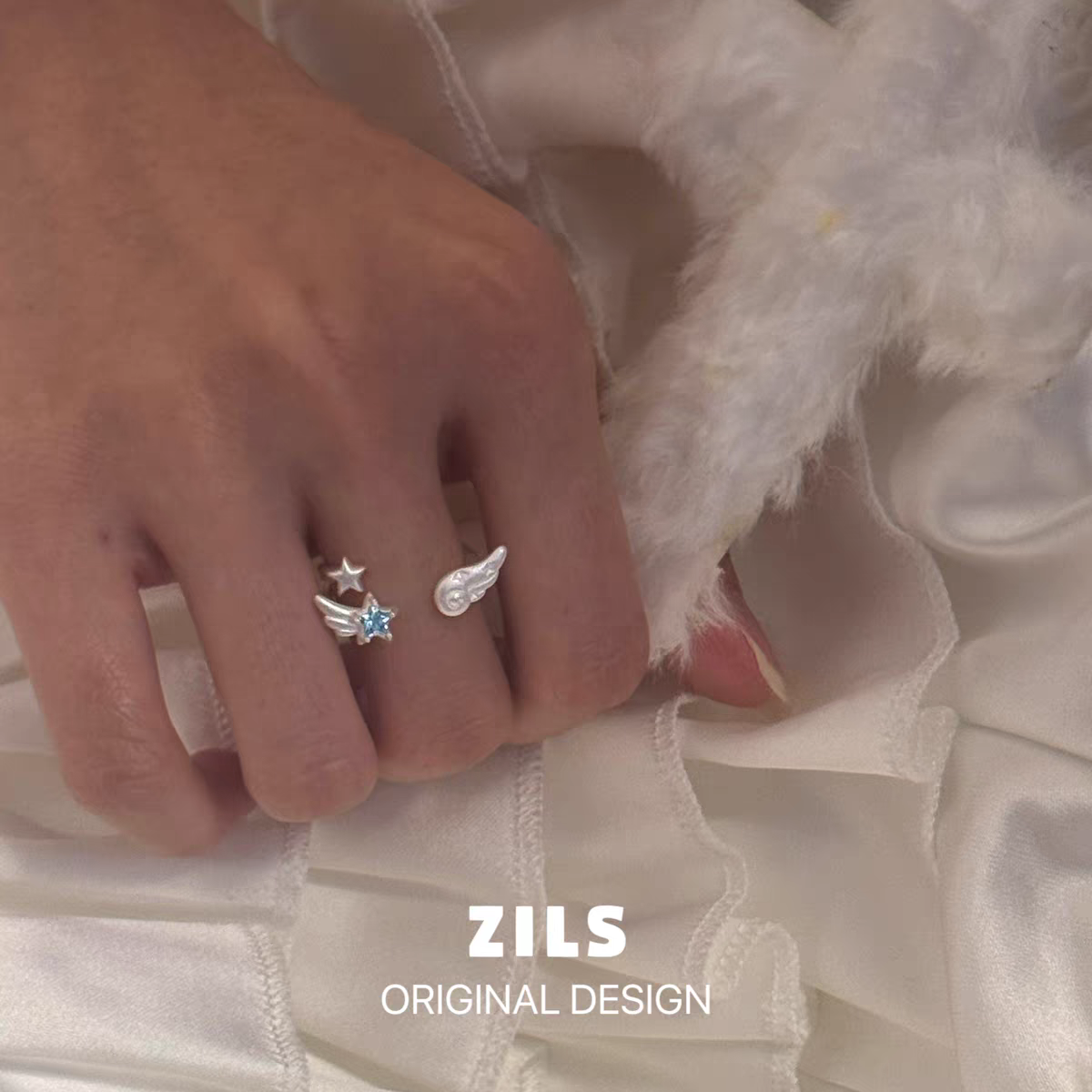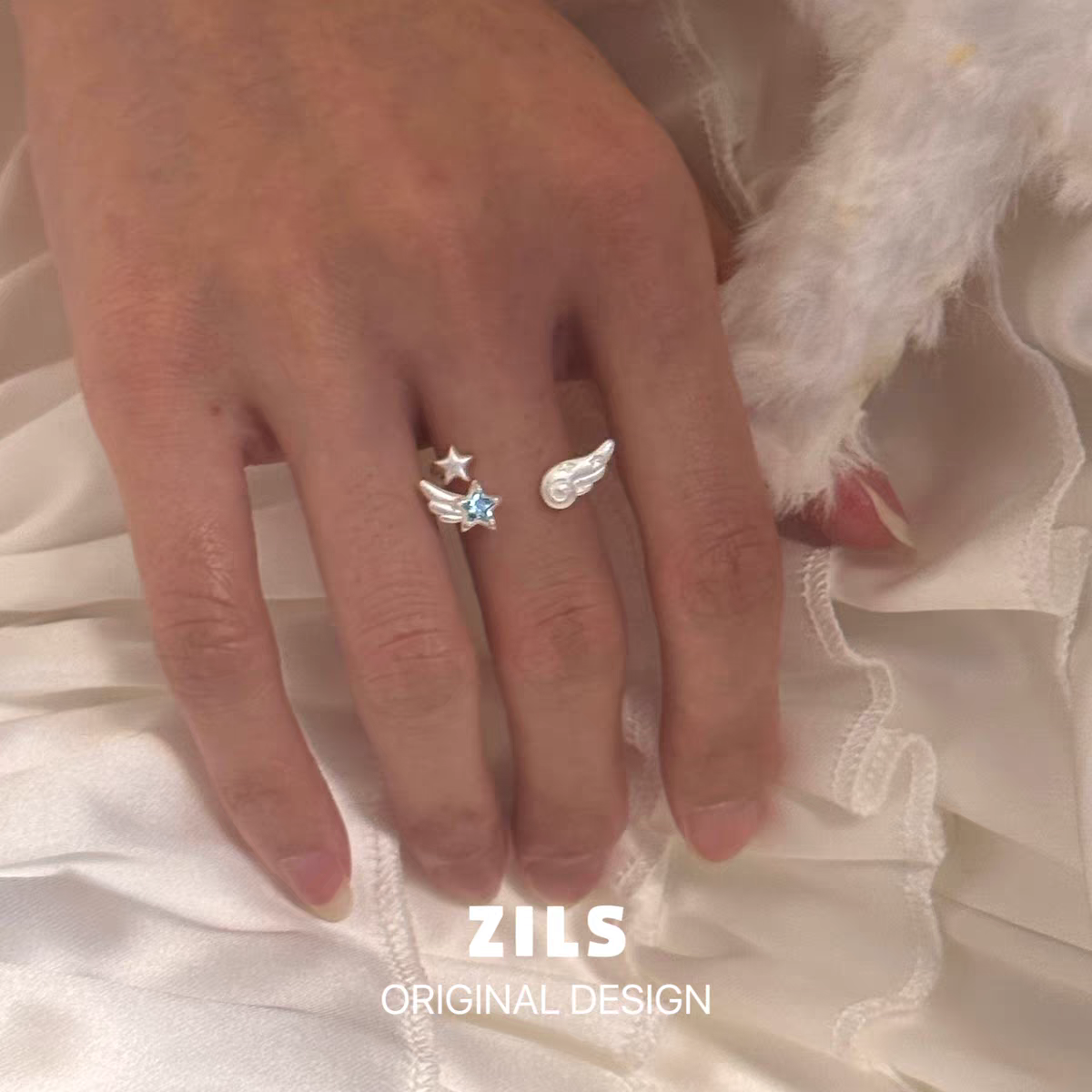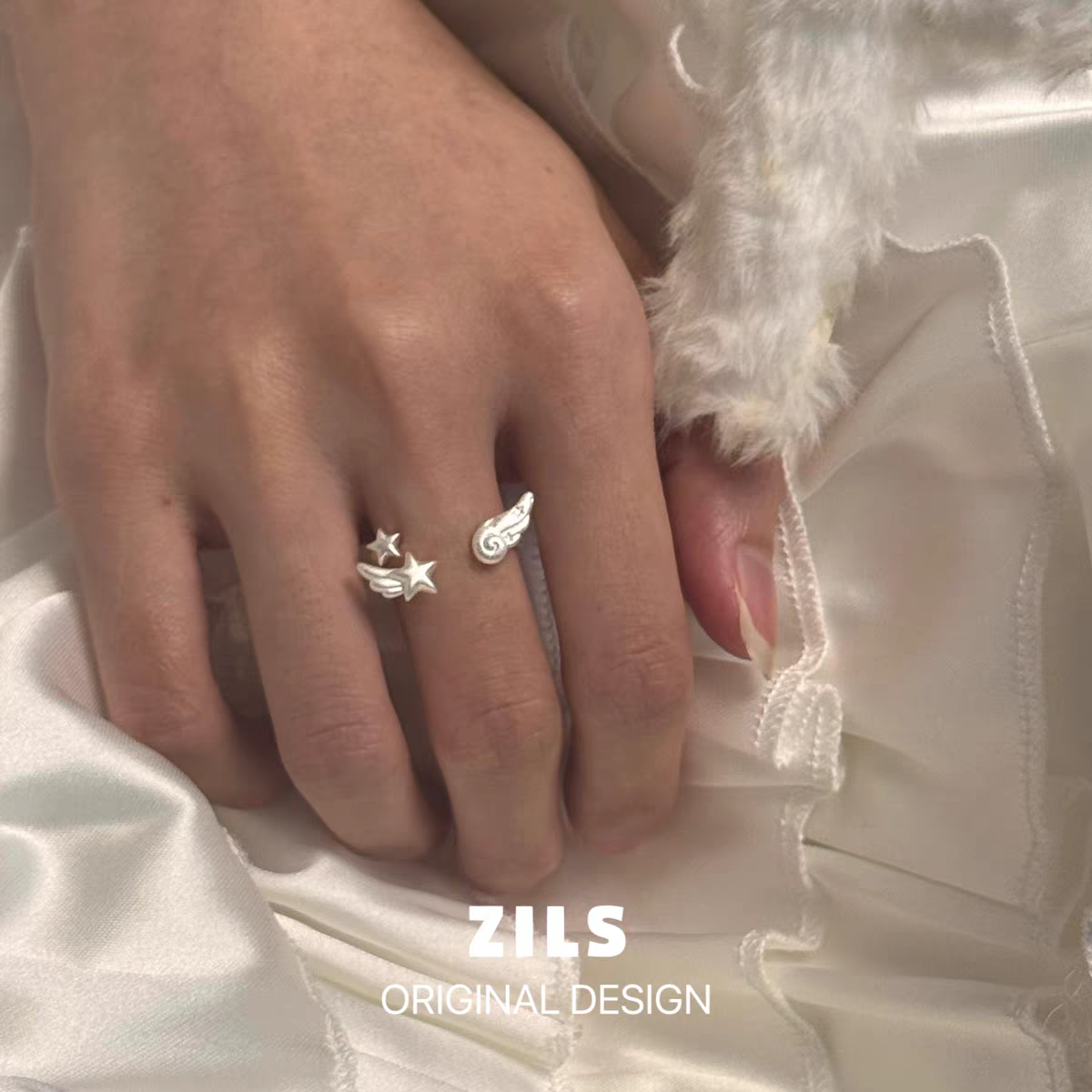 天使星星翅膀戒指女小众设计轻奢高级感食指戒甜酷可爱高颜值指环